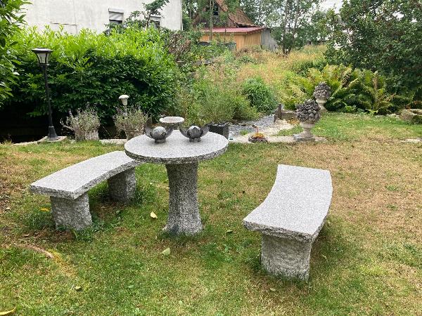 Das Grundstück hat eine Größe von ca. 697 m² und zusätzlich einen Garten mit über 300 m² unmittelbar am Grundstück. Der Garten mit seinem Bachlauf ist eine echte Wohlfühloase und lässt keinen Wunsch offen.